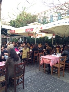 Of course, it would be wrong to say that everything is going fine here. The effects of the economic crisis are all too evident in the amount of ‘to let’ signs on once bustling streets. But it would also be wrong to say that the people aren’t enjoying simple pleasures still. There is nothing more enjoyable than a good souvlaki, a perfect winter salad of shredded cabbage, all washed down with a well chilled beer