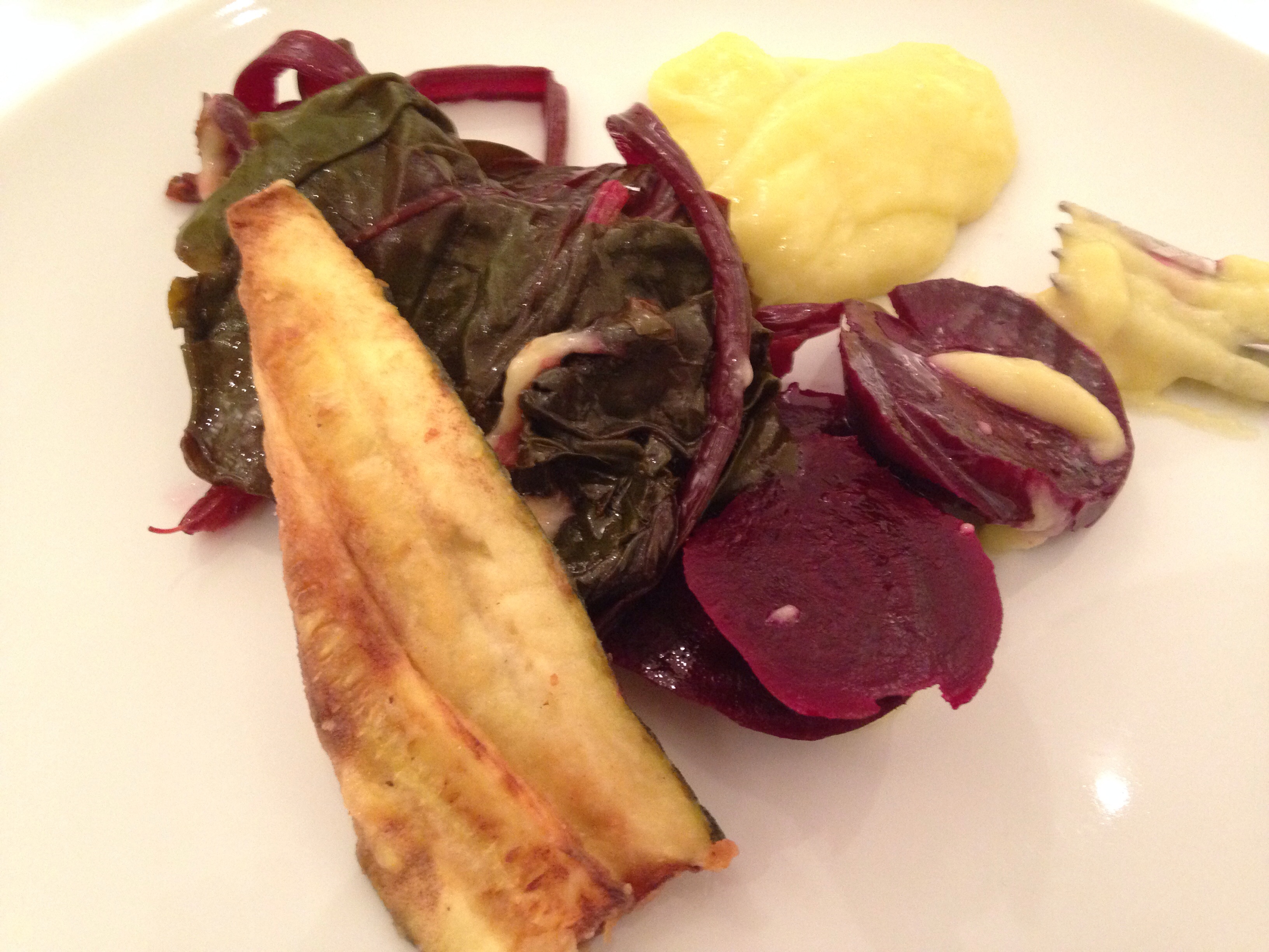 Sliced roots,along with a cluster of braised leaves, dressed with a drizzle of olive oil, topped with a good blob of creamy skordaliá create a totally heavenly experience.