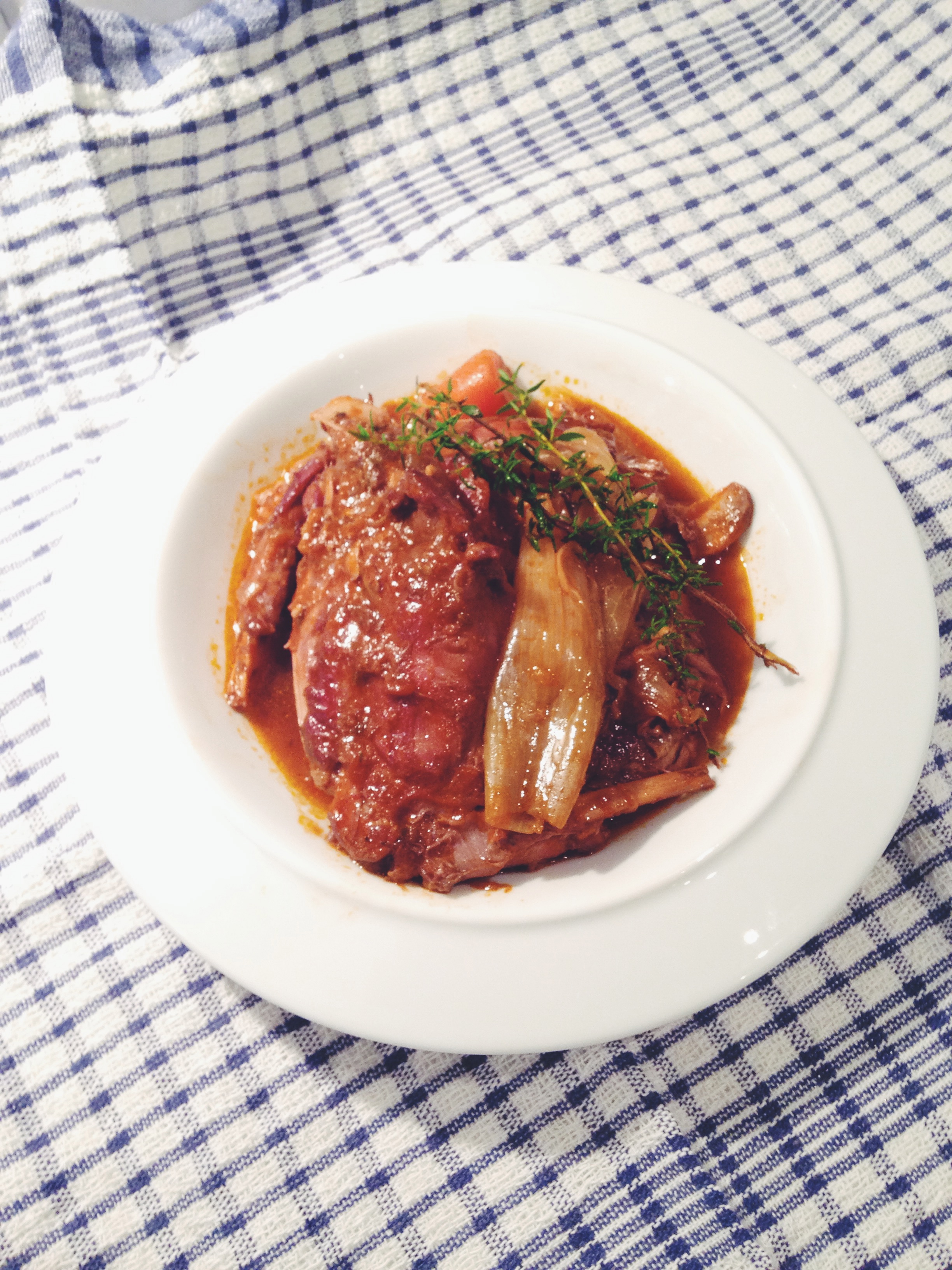 The romantic in me envisaged a trip to a mediterranean market, returning with my rustic basket brimming with amazing fresh produce – elongated parchment-skinned shallots, perfectly ripe, shiny tomatoes and,of course,the star of the show,a plump,jointed, pink rabbit.