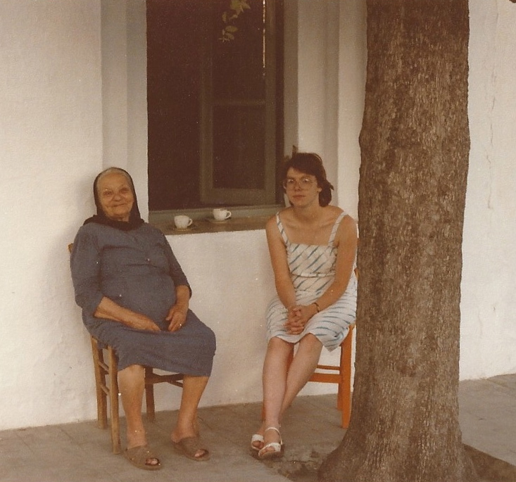 Kyrá Marió was, in the 1980’s when I got to know her, one of those head-scarved old ladies that we all see in small Greek towns and villages. Every morning, the brown door of her little, white house would open and exactly three rush-seated chairs would be placed on the pavement. And there Marió would be for most of the day. Passing neighbours would stop and chat; those with a little more time, taking one of the chairs for a little while to exchange local gossip and remark on the tourists – these curious beings that now inhabited their world. When, eventually, I was invited to sit and chat with her, I couldn’t have been more proud.