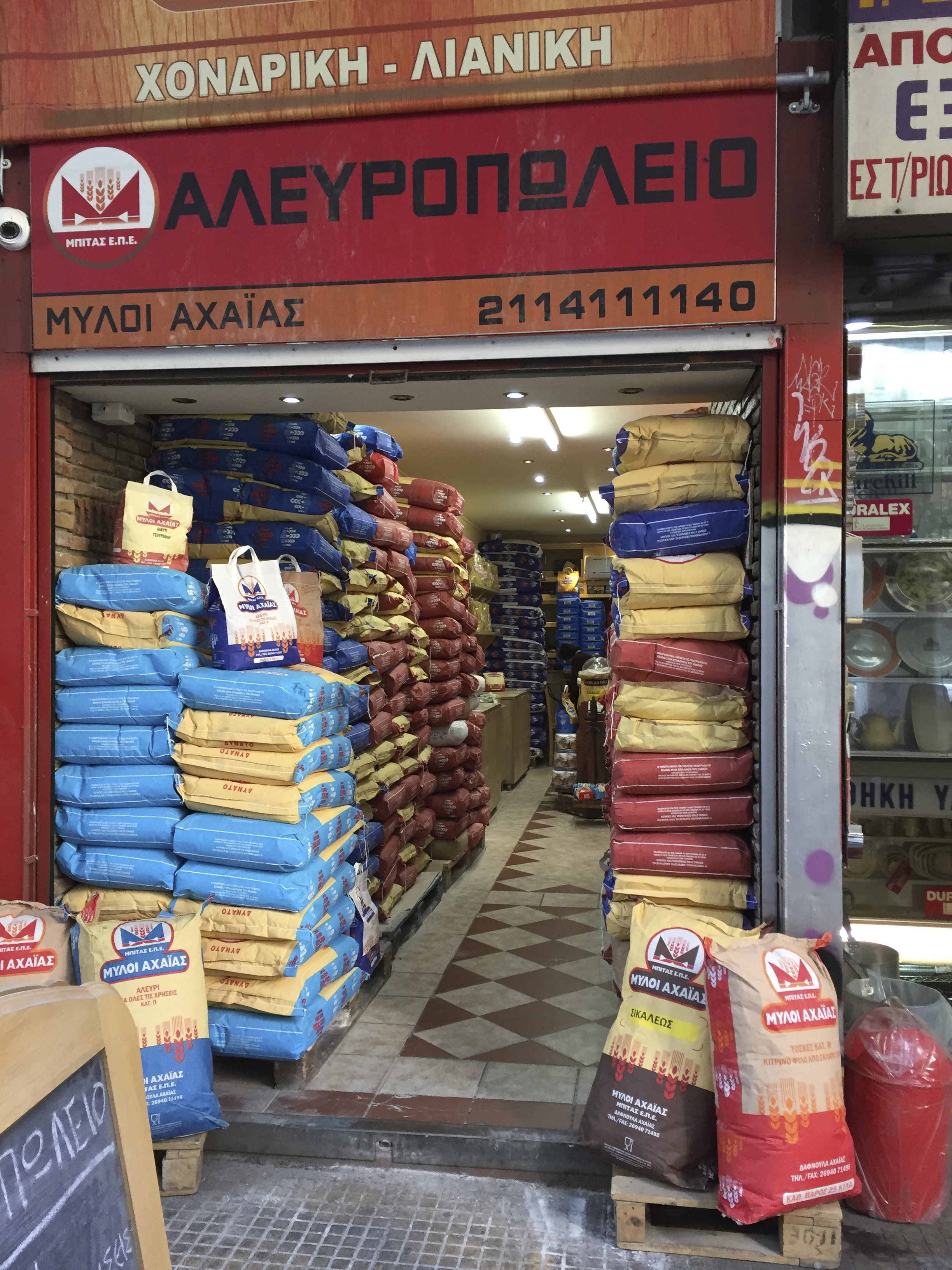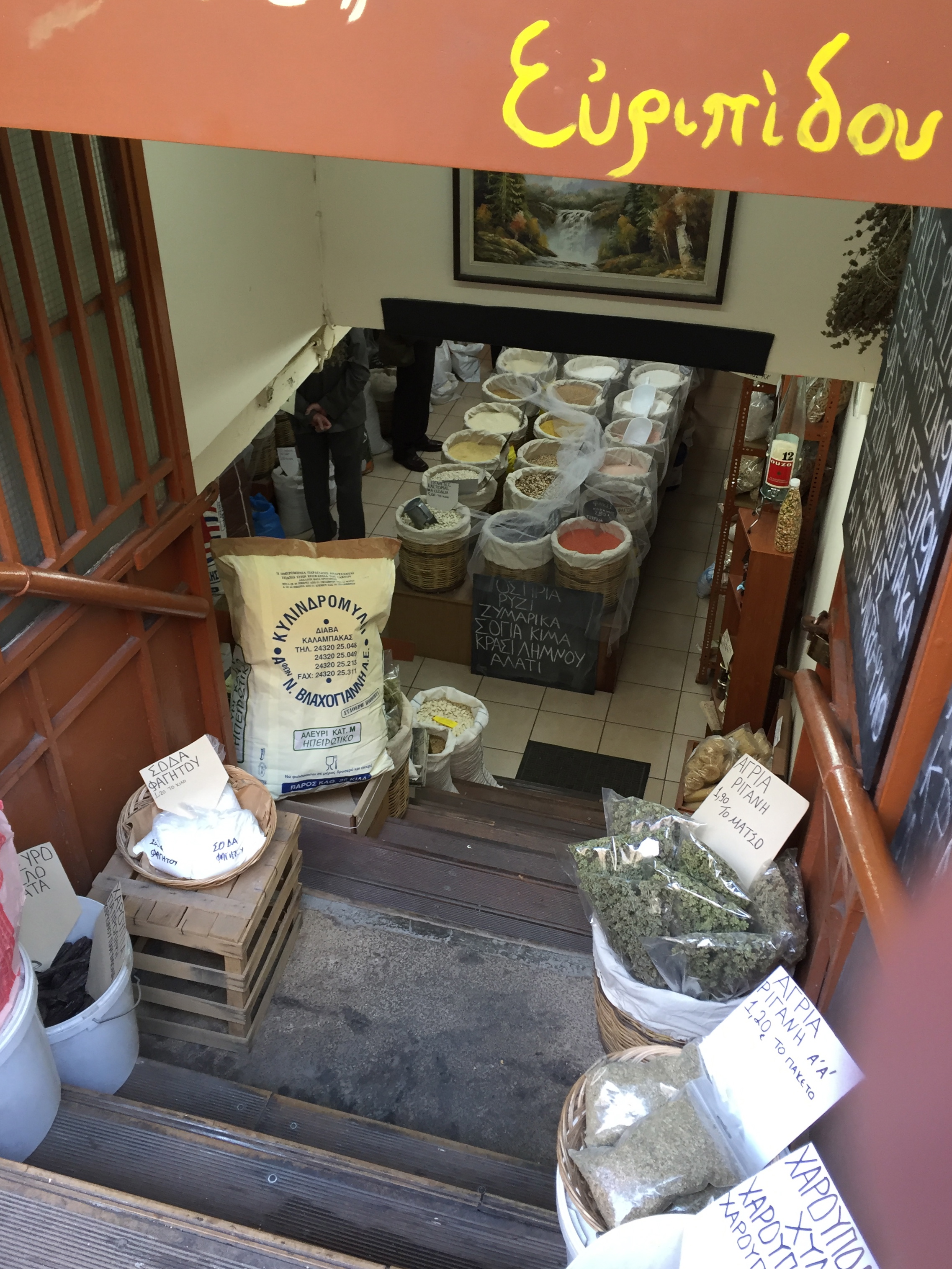 Looking down a flight of subterranean steps you find stores, selling possibly every kind of dried bean and lentil you could ever need. There are barrels of honey and olive oil, sold ‘loose’, and a place close by to buy the bottle to store it in. There is even a shop that specialises in string. This street is heaven.