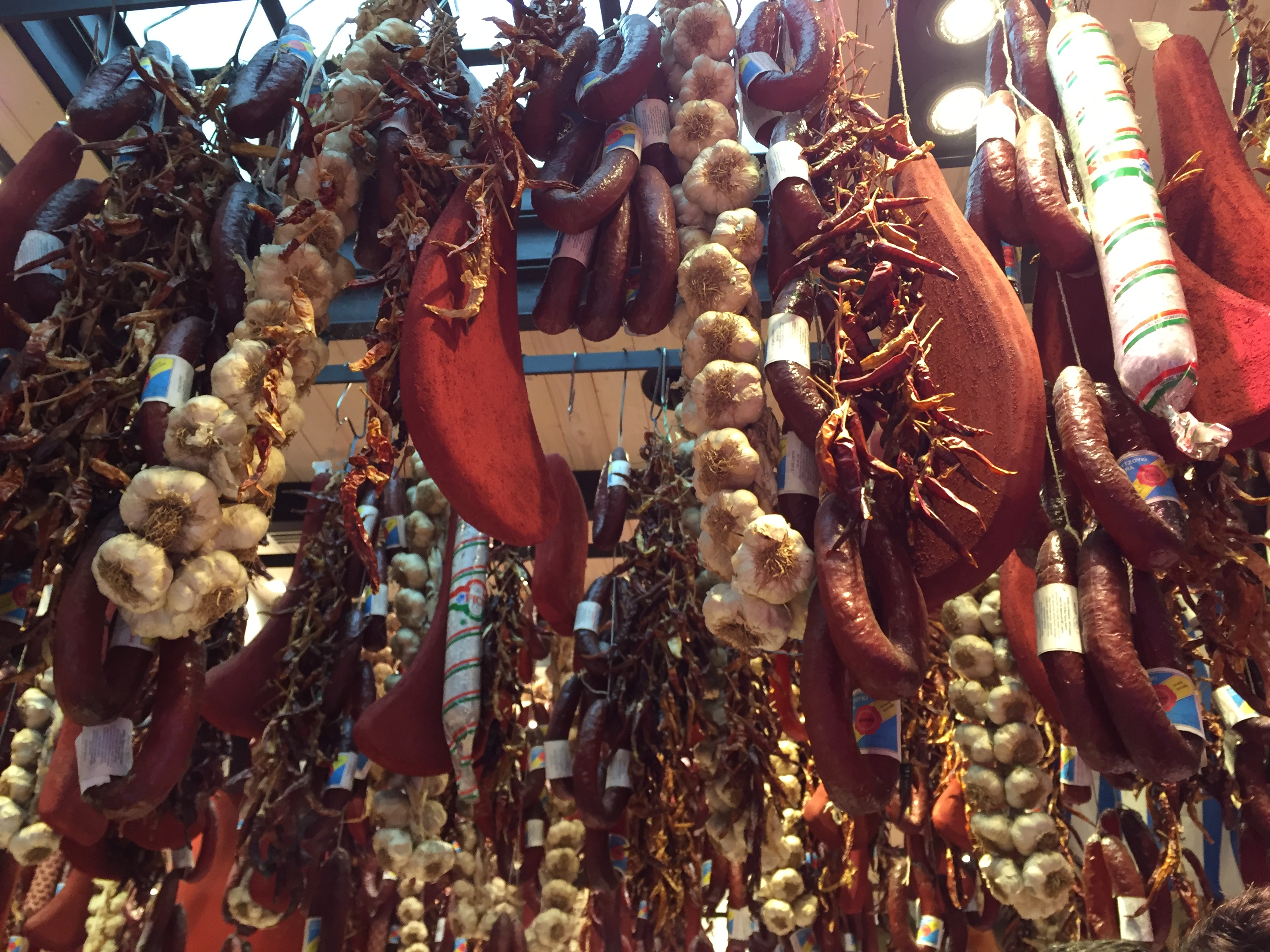 A little further down you arrive at a shop that is something close to salami heaven. The ceiling is festooned with ropes of dried sausage, cured hams, and garlic; this is ‘Miran’,