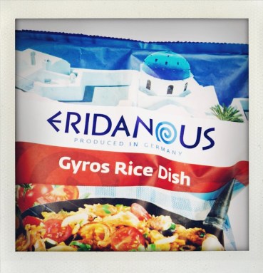 OK they do the feta, the olives and the oil, I guess those are sourced in Greece – hopefully. But the the ready meals are just totally invented. Is there anyone that knows of a thing called ‘Gyros Rice Dish’ ?