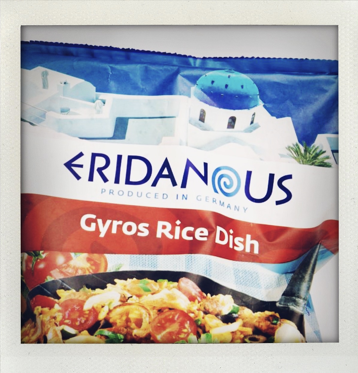 OK they do the feta, the olives and the oil, I guess those are sourced in Greece – hopefully. But the the ready meals are just totally invented. Is there anyone that knows of a thing called ‘Gyros Rice Dish’ ?