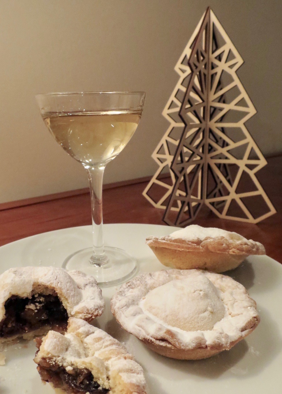Out of all of this a truly mongrel recipe has been born. I worked out early on that baking two lots of Christmas goodies was unfeasible and, frankly just over the top. Melomakárona,  those delectable, honey-drenched, spiced cakes are clear favourites, so they are always present. Traditional British Christmas cake did not make it in our popularity contest and has been dropped. The Anglo-Saxon in me couldn’t bring myself to leave Father Christmas a kourambié along with his glass of sherry, so in a moment of madness the solution to that conundrum was born. Mince Pies with Kourambié Pastry.