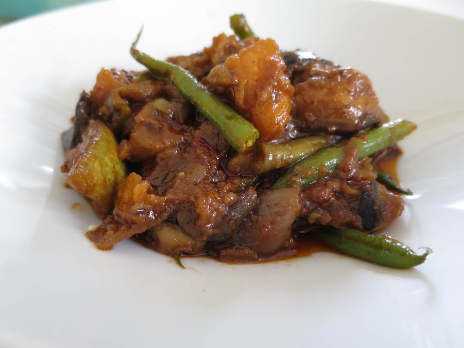Any other vegetables can be added to suit your taste and fridge leftovers. I like a few green beans – it’s probably a good idea to blanch bigger ones for 3-4 minutes before adding them to the pan. Chunks of potato are a nice addition too – these need to be sautéed like the other vegetables.