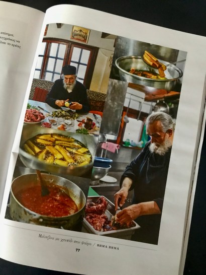 But don’t be under any misapprehensions, there is not much penance involved here. These are recipes that are simultaneously robust and delicate, celebrating all the glorious produce of the seasons. Above all, Brother Epiphanios’ sensitivity and joy shine through in his cooking. The dishes are, in some ways, simple – you don’t have an Ottolenghi- length list of ingredients to find – but they are truly clever and refined. In his instructions, Epiphanios stresses not only the importance of the freshness and quality of the food ingredients but also that other essential ingredient, love for the people that you are cooking for. In an interview with the journalist Margarita Pournara in 2019 he said,