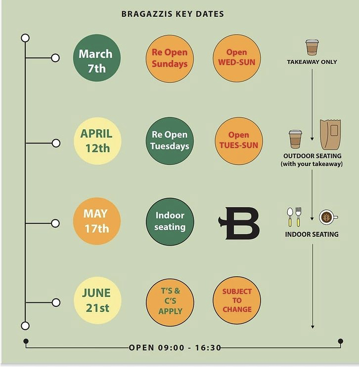 ‘It was incredibly scary. I was worried for our staff, the customers, and ourselves’, and with all the precautions it wasn’t Bragazzi’s. ‘We lost some of the informality and that Mediterranean culture we like.’ It’s important to Matteo to bring back that atmosphere.