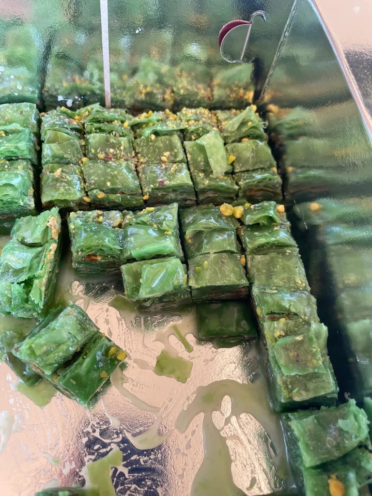 I visited that stand and brought home that green Baklava in the picture. I cannot find any5hing comparable. Does anyone know if this company ships to the US. I’ve been craving it since May…..ugh
