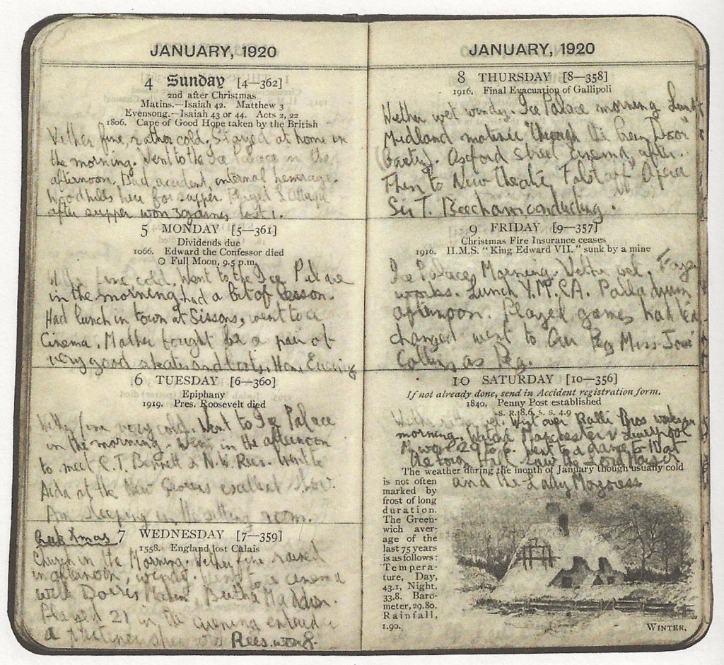 Greek was spoken, Greek food was served at, Kersal Hill and in the other family homes. They remained Greek Orthodox; for instance, the 14 year-old Cas writes that the family attended church on Greek Palm Sunday and that he fasted on Orthodox Good Friday. It is interesting to note that they celebrate Christmas with the Eastern Church and the Julian calendar on 7th January, marked by Cas as ‘Greek Christmas’ in that day’s entry. In 1939, all this Greek background would become more important to Cas than he could ever have imagined – but that’s a story for another time.