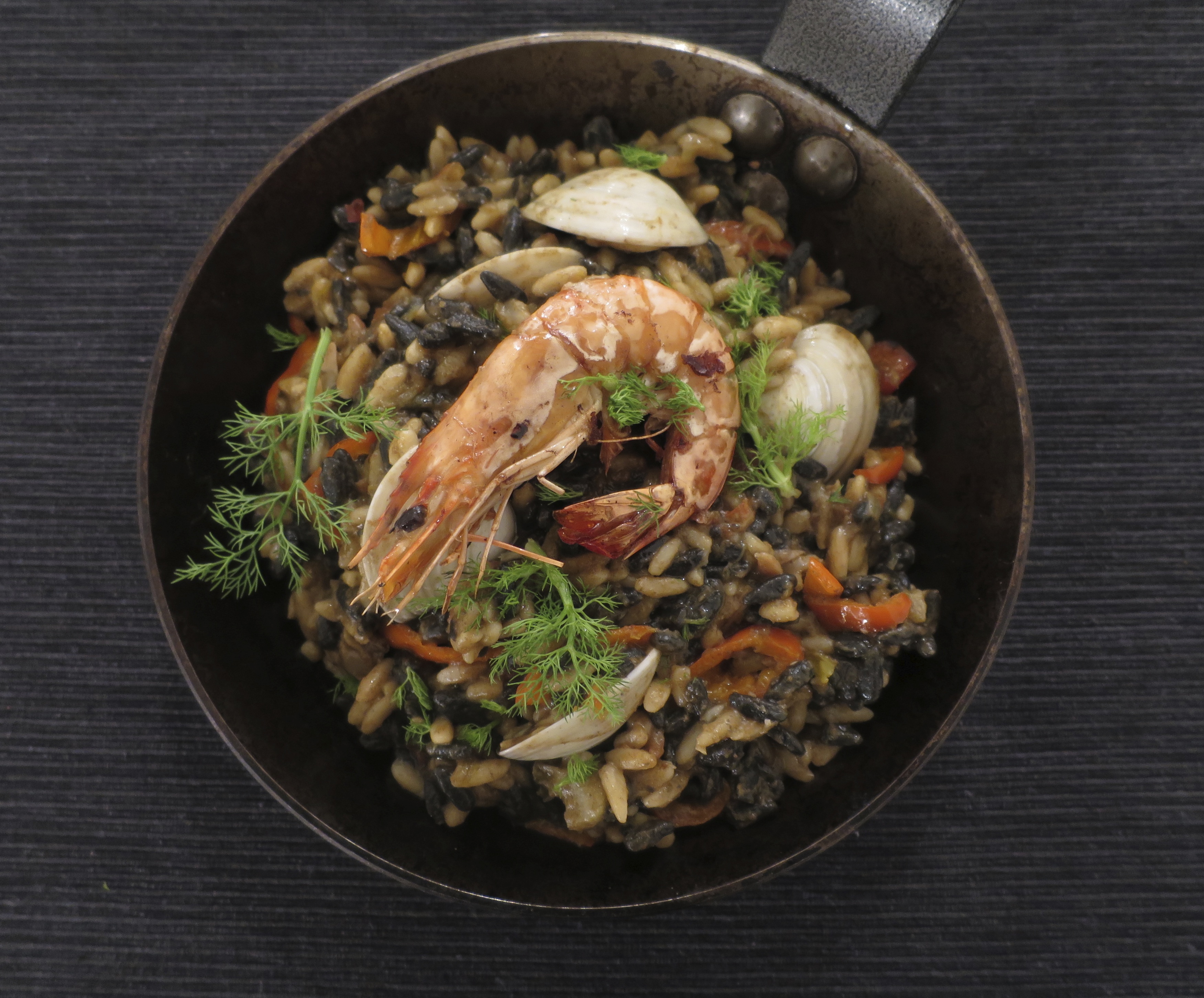 Orzo with sepia – http://amaltheadeli.co.uk/product/orzo-with-seafood-mix/