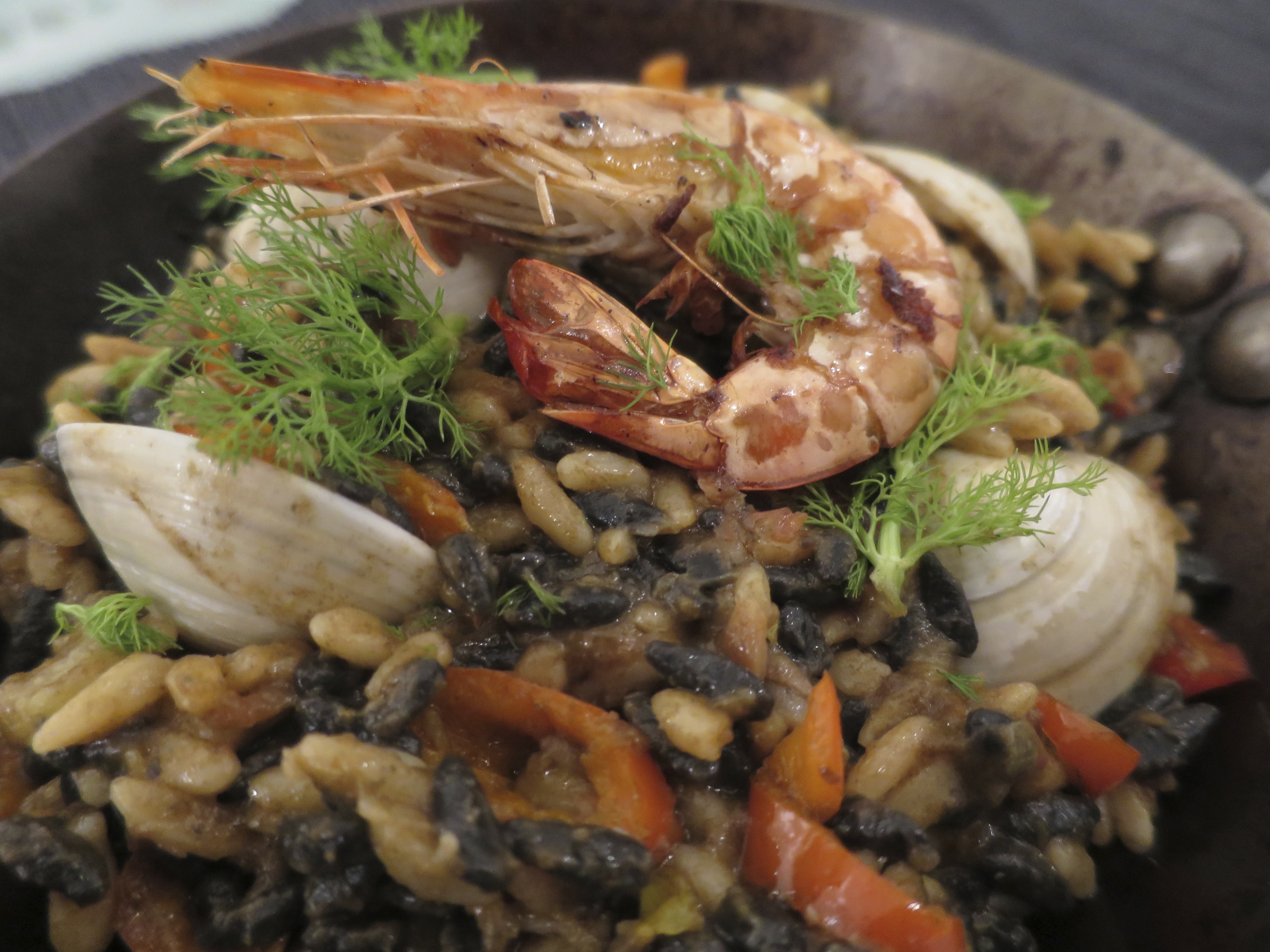 When the pasta is about half cooked, add the prawns and clams and bury them in the orzo. If the mixture is a bit dry, add some more stock or water. Check the seasoning. Once the clams just start to open put the casserole in the oven and cook at 190 degrees for about 10 – 15 minutes, making sure that the prawns don’t overcook.