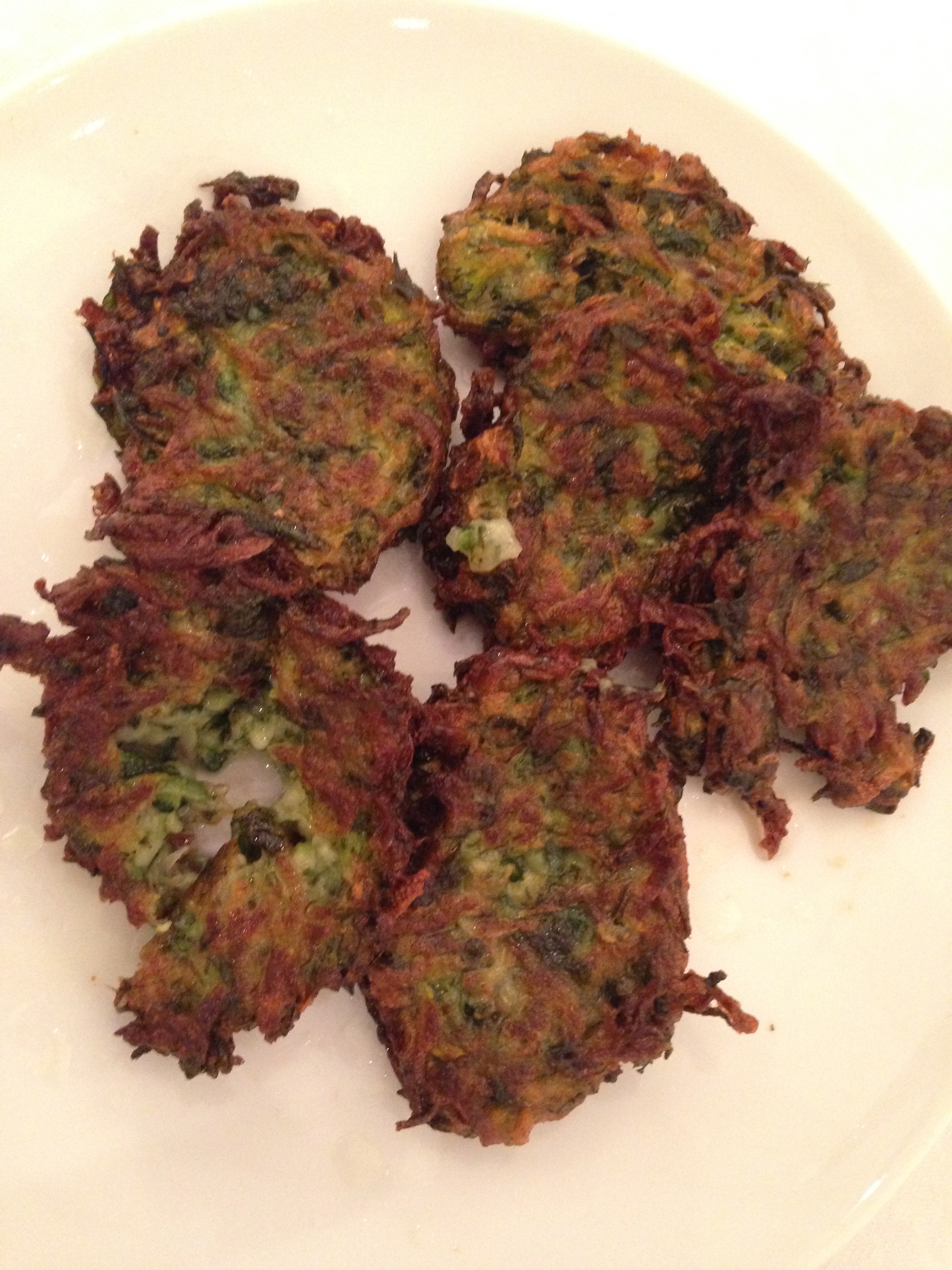 Test to see if the oil is hot enough by dropping in a small amount of the courgette mixture. It should sizzle immediately but not be so hot that it burns.