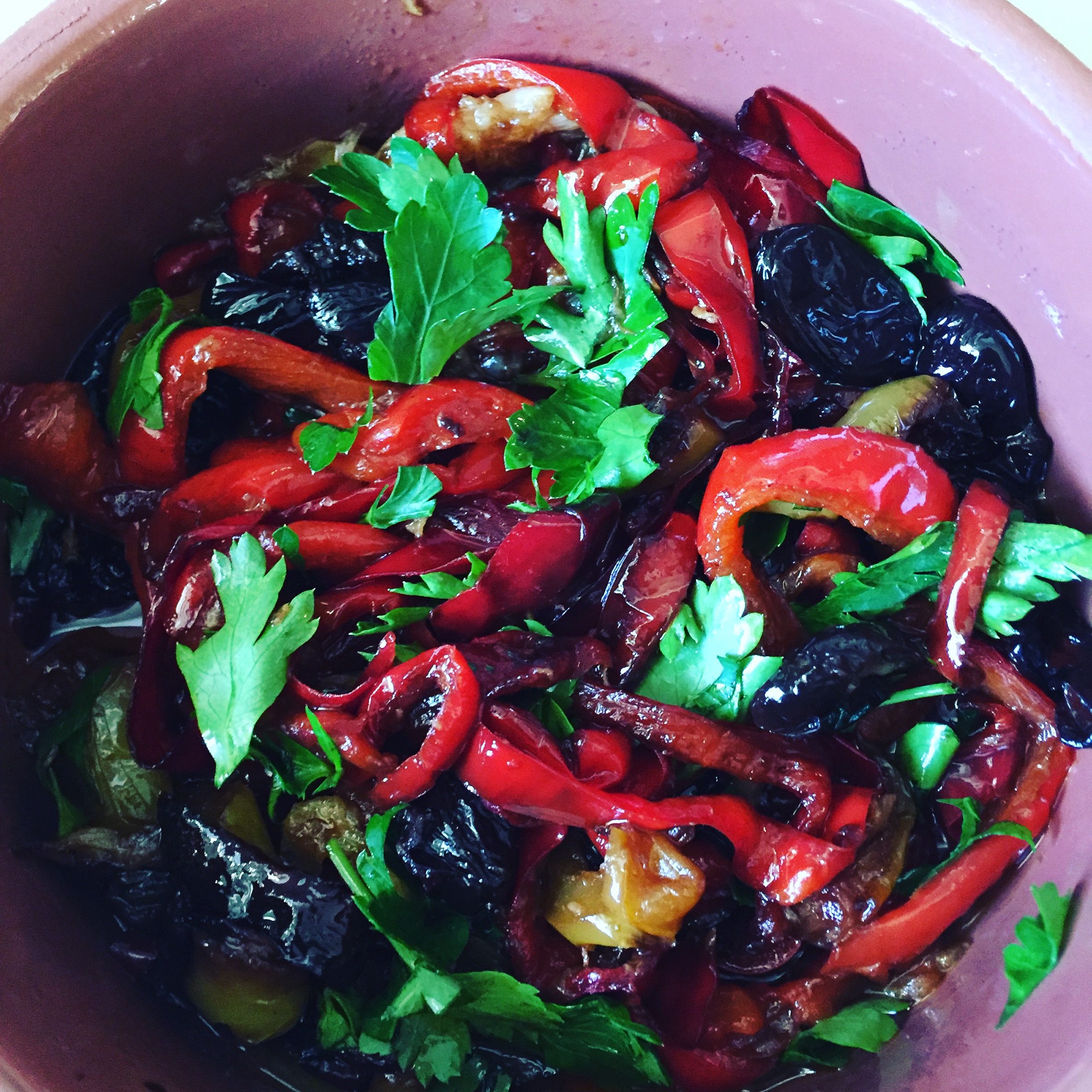 3 large, long red peppers (the ‘Romano’ or similar – in Greece this would be ‘Florina’ type peppers.)