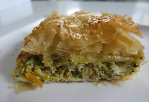 This is another one of the superb traditional Greek pies. This one has a filling of grated courgettes or marrow. I really like adding a bit of grated butternut squash too. As with all the vegetable pies, it is good to get as much liquid out of the vegetables as possible, to keep the filo pastry nice and crispy. It’s a perfect vegetarian recipe for both the summer and autumn.