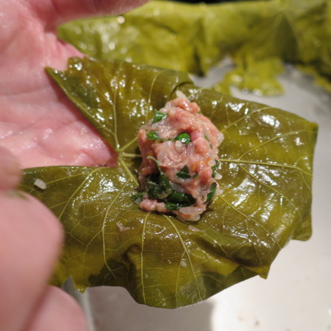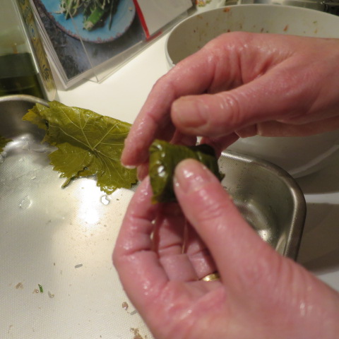 Now start to make the stuffed vine leaves. I am describing doing this as a right-handed person.